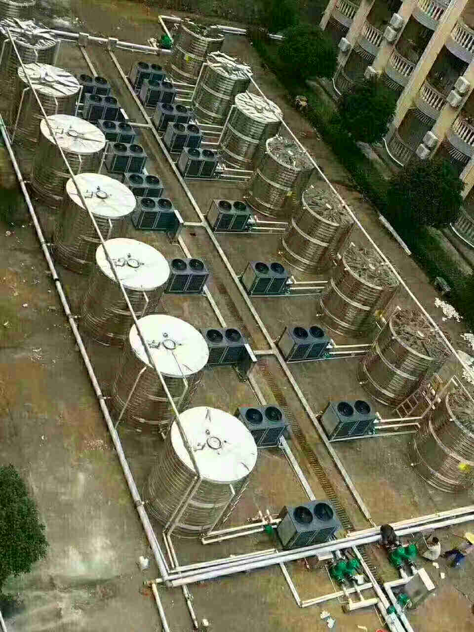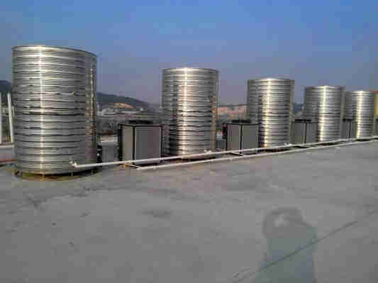 在標況下系統(tǒng)設(shè)計為自來水流經(jīng)機組一次升溫5℃。將保溫水箱中的水循環(huán)加熱至設(shè)定溫度。系統(tǒng)設(shè)計簡單,在天氣比較寒冷區(qū)域,機組能穩(wěn)定運行。